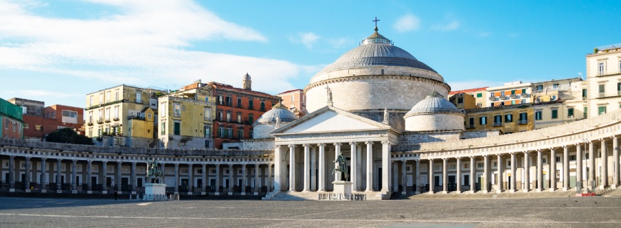 At the beginning of the 19th century, the original buildings were demolished to make way for a grand architectural project, but the ancient spirit of the city was preserved through the surrounding monuments. The focal point is the Basilica of San Francesco di Paola, which features a 53-meter-high dome and was built to resemble the Pantheon in Rome.