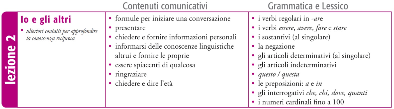 In questa lezione impareremo a presentare noi stessi e gli altri, a parlare delle professioni e a usare gli articoli indeterminativi e la negazione.. |