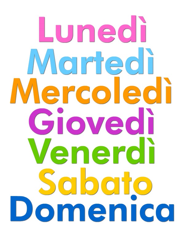 Esercizi I giorni della settimana: esercizio 1. I mesi dell'anno: esercizio 1, esercizio 2. |