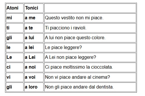 Prima del verbo "piacere", mettiamo una piccola parola che ci dice a chi piace qualcosa.
