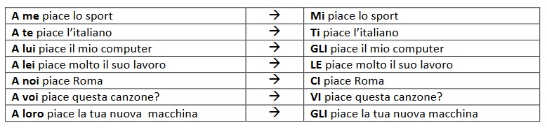 Prima del verbo "piacere", mettiamo una piccola parola che ci dice a chi piace qualcosa.