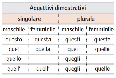 I due aggettivi dimostrativi principali sono: questo e quello.