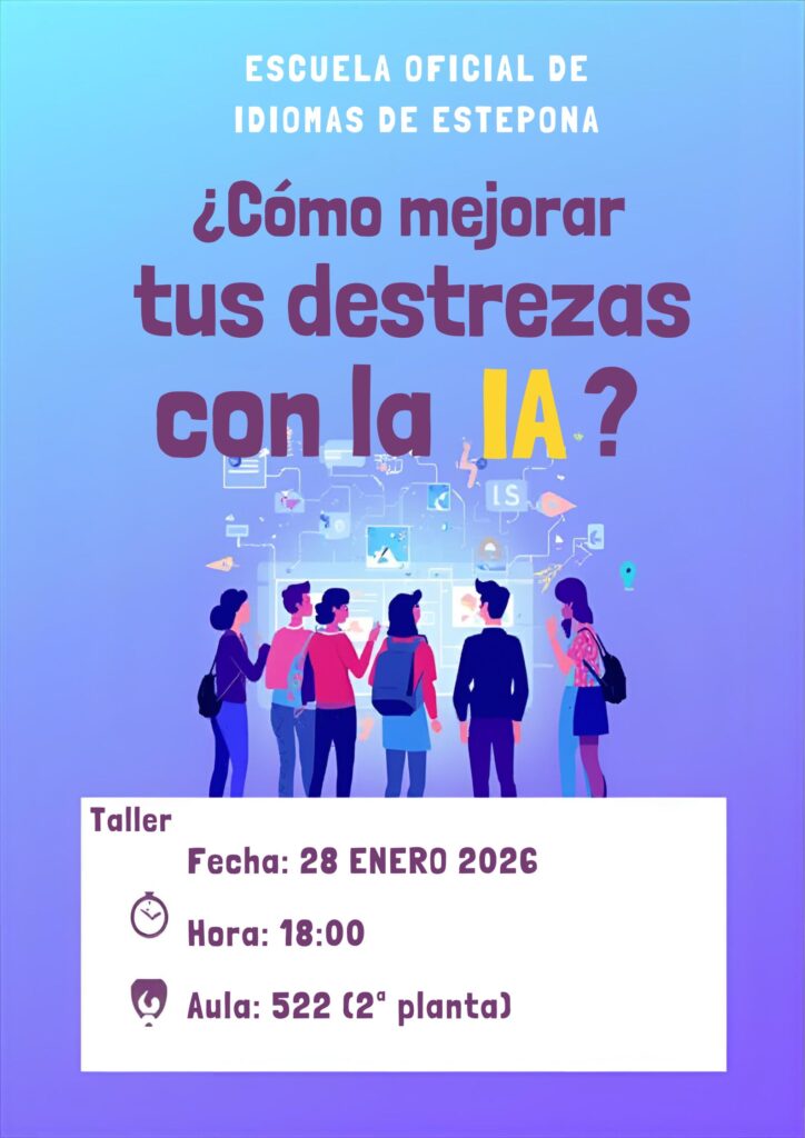 El próximo miércoles 28 de enero a las 18:00 h tendrá lugar una nueva sesión del taller sobre Inteligencia Artificial, una oportunidad perfecta para seguir aprendiendo y descubriendo cómo la IA puede aplicarse a nuestro día a día y al aprendizaje de idiomas.