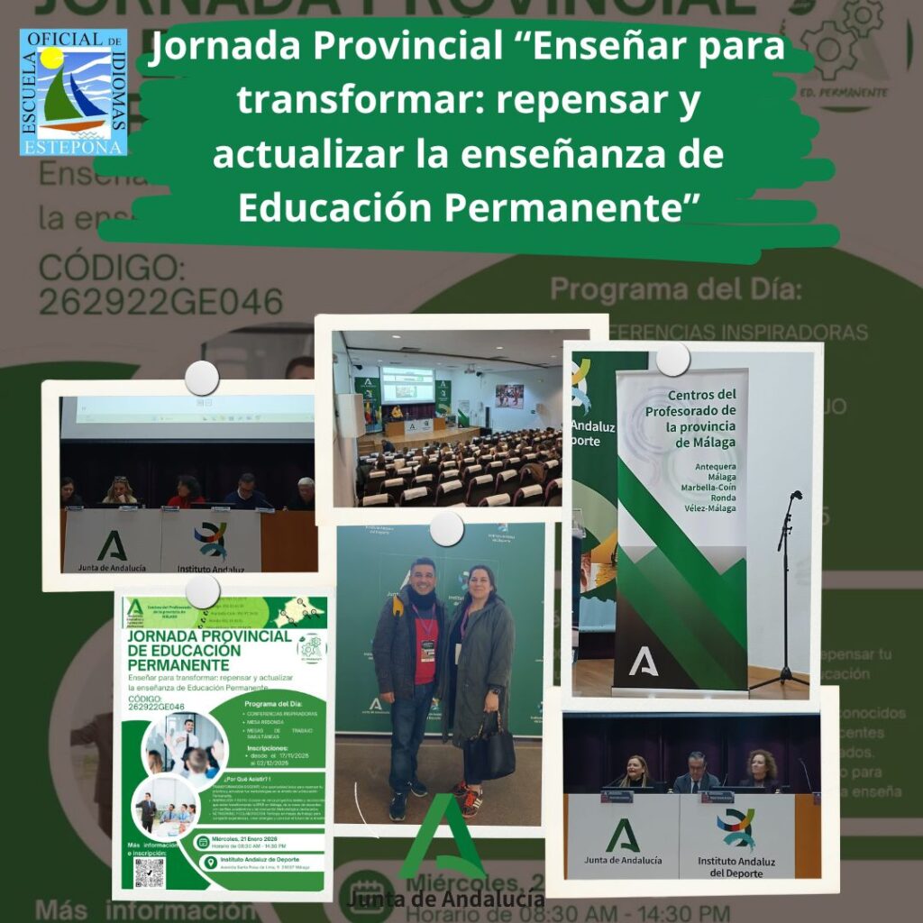 📍 La EOI Estepona ha estado presente en la Jornada Provincial “Enseñar para transformar: repensar y actualizar la enseñanza de Educación Permanente”, celebrada el 21 de enero en el Instituto Andaluz del Deporte y organizada por el CEP de Málaga, con la participación de su director Juan Ortiz y el profesor de inglés Agustín Cortés.