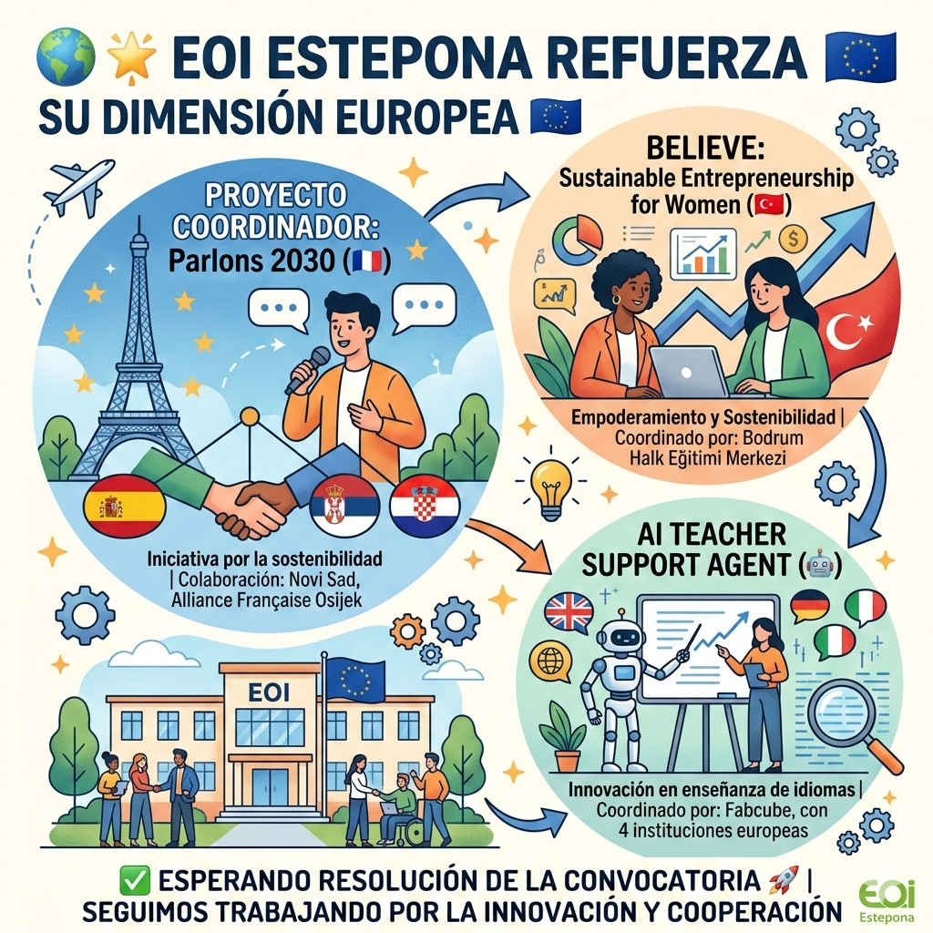 Además, formamos parte del proyecto AI Teacher Support Agent for Innovative Foreign Language Teaching, un KA220 coordinado por Fabcube, en colaboración con otras cuatro instituciones europeas.
